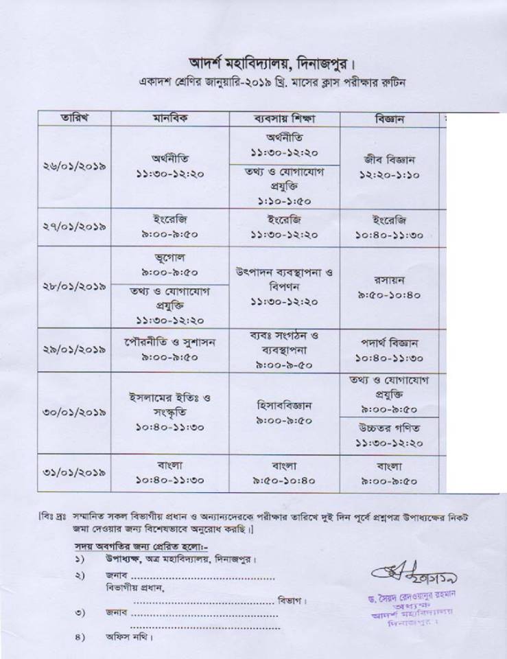 অত্র মহাবিদ্যালয়ের একাদশ শ্রেণির জানুয়ারি ২০১৯ খ্রি. মাসের ক্লাস পরীক্ষার রুটিন প্রসঙ্গে।