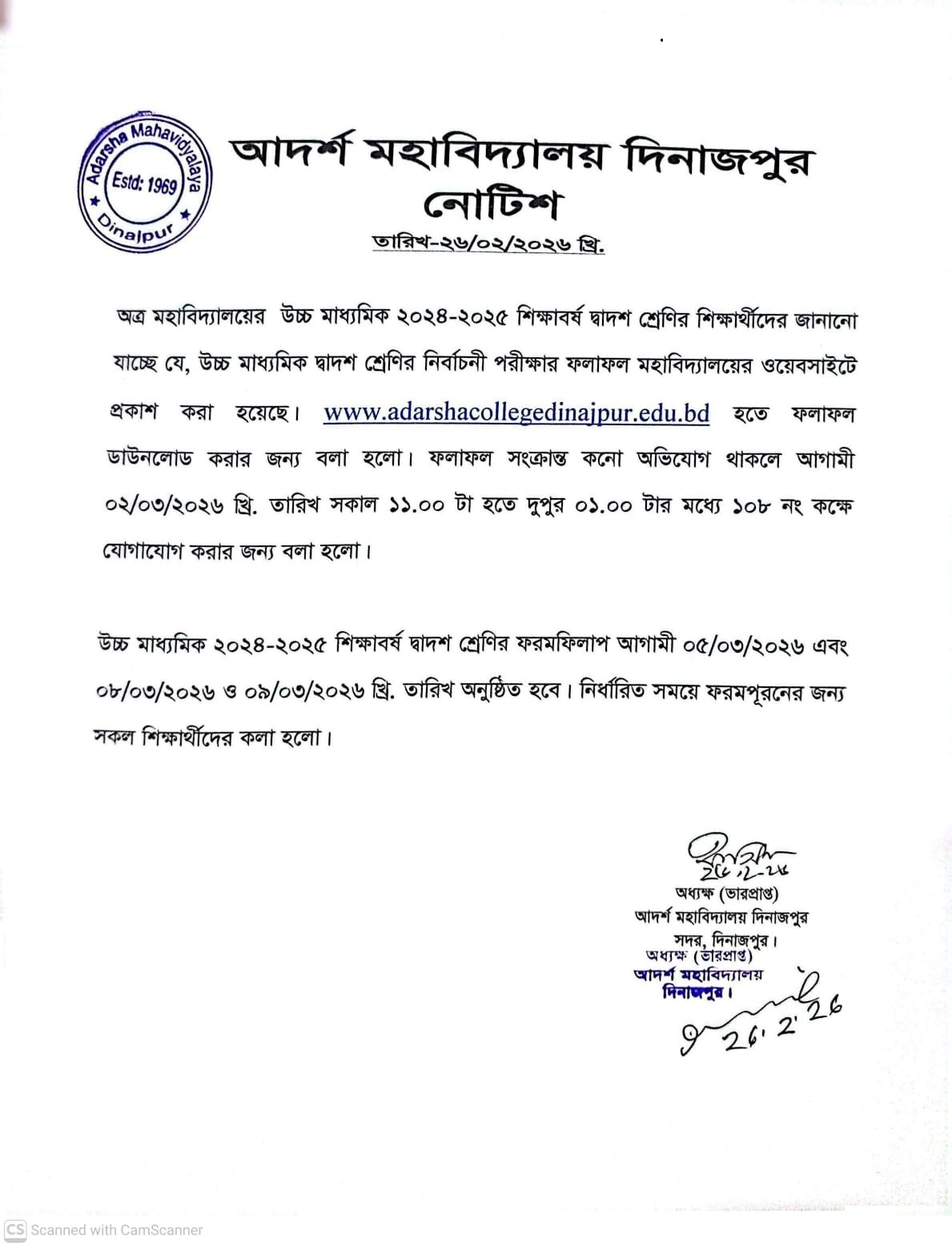 আ্দর্শ মহাবিদ্যালয়ে দিনাজপুর এ ২০২৫-২০২৬ ইং সালের ভতির নোটিশ তাং-...