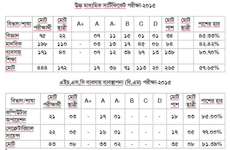 বিগত পরীক্ষার ফল
