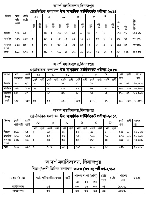 উচ্চ মাধ্যমিকের ফলাফল-২০১৬(আদর্শ মহাবিদ্যালয়)