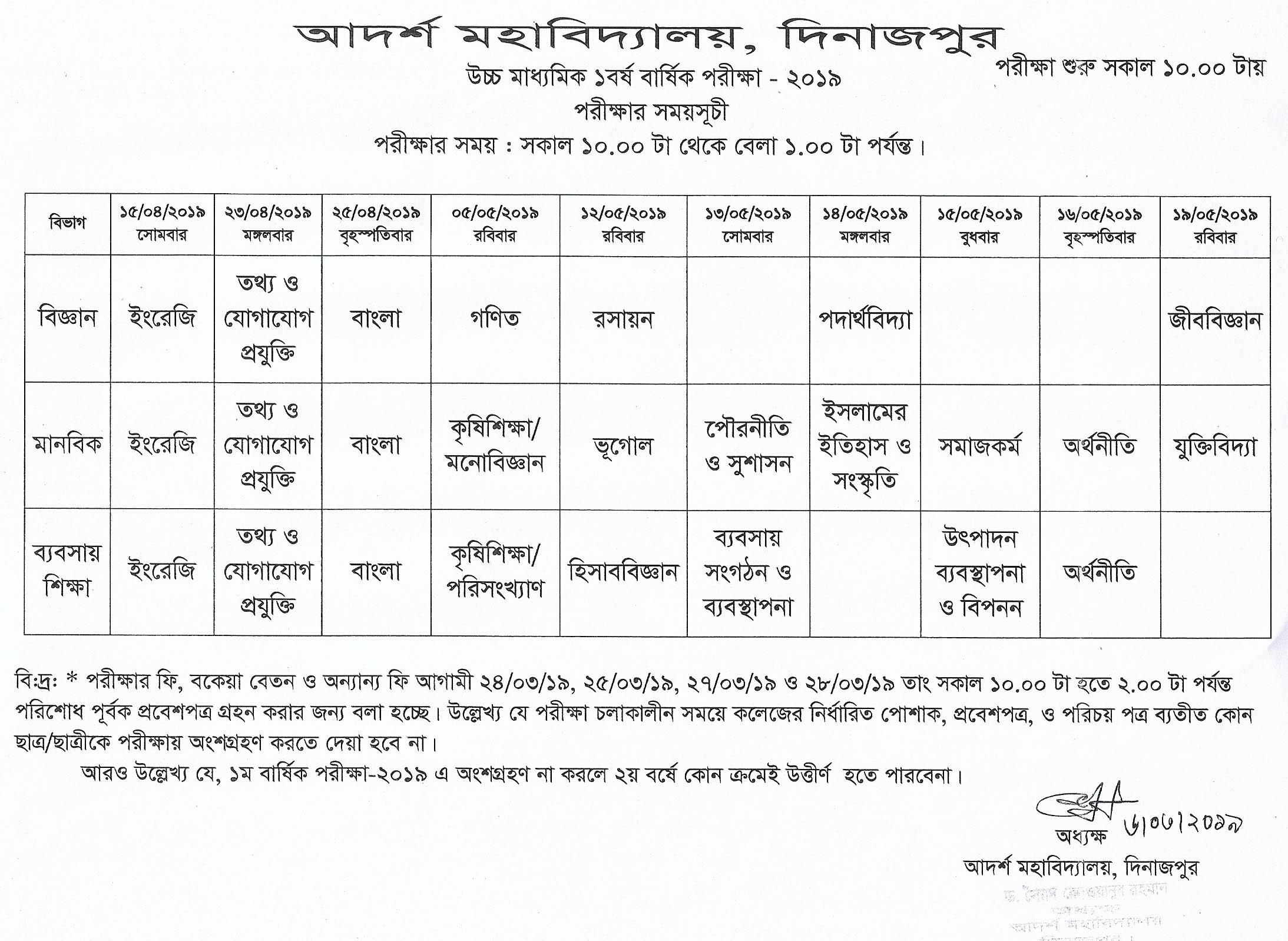 অত্র মহাবিদ্যালয়ের উচ্চ মাধ্যমিক একাদশ শ্রেণির ২০১৮-১৯ শিক্ষাবর্ষের ছাত্র-ছাত্রীদের বার্ষিক পরীক্ষার রুটিন ।
